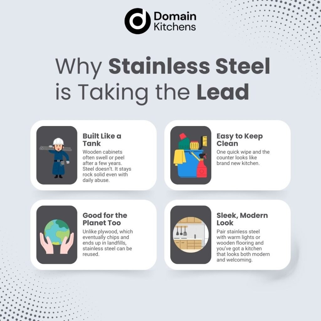 Plenty of people still choose wood or laminate for modular kitchens, but stainless steel is proving to be a smarter choice for Indian homes. Here’s why:
